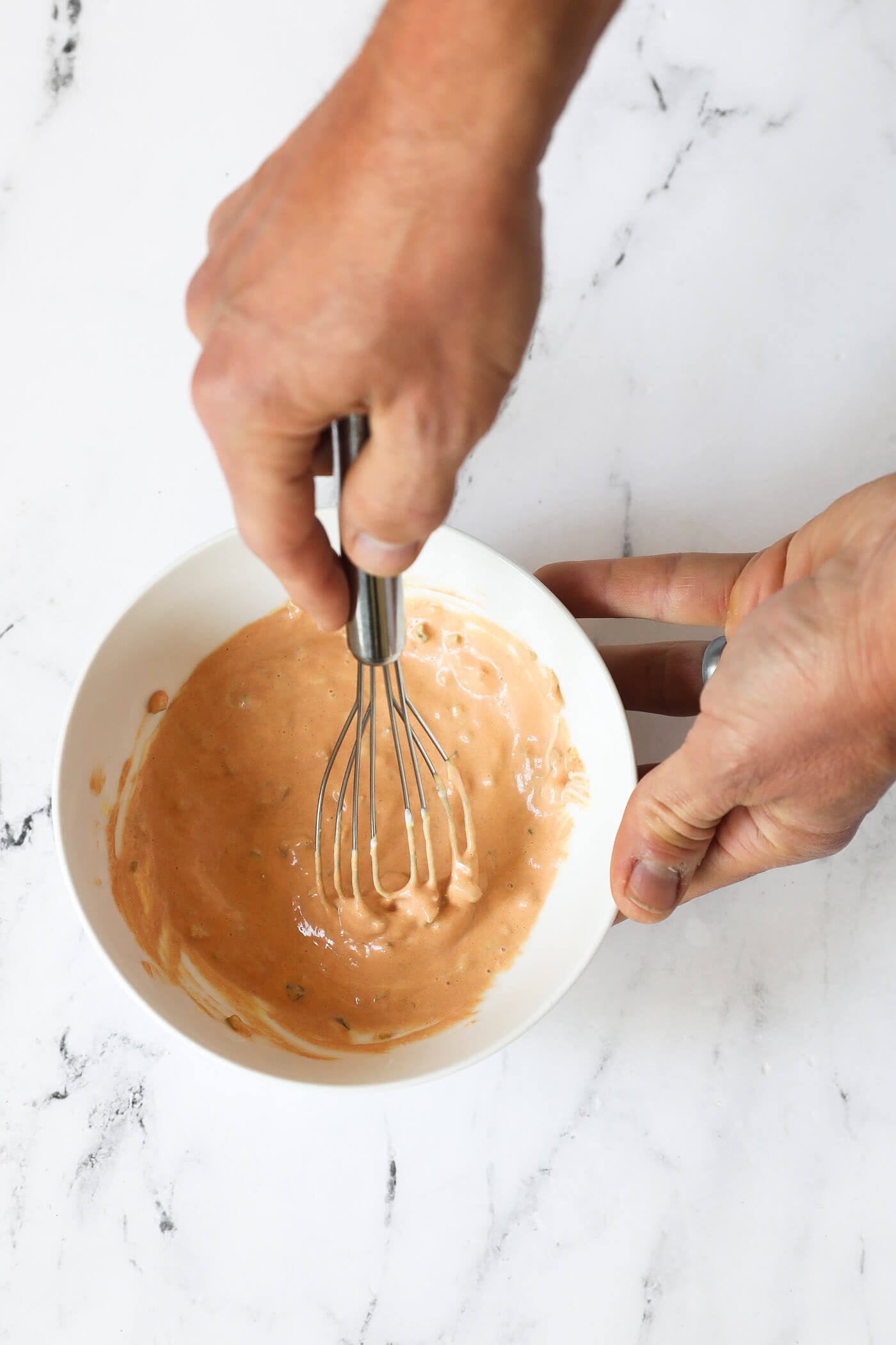 - Start by making the sauce. Combine all of the sauce ingredients in a bowl and mix well with a whisk. Refrigerate while you make the burgers.