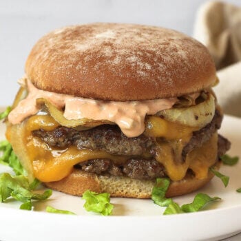 - Prep everything first – Since the burgers cook so quickly, it’s a must to prep everything (sauce, onions, bun, lettuce & cheese) to have it ready.