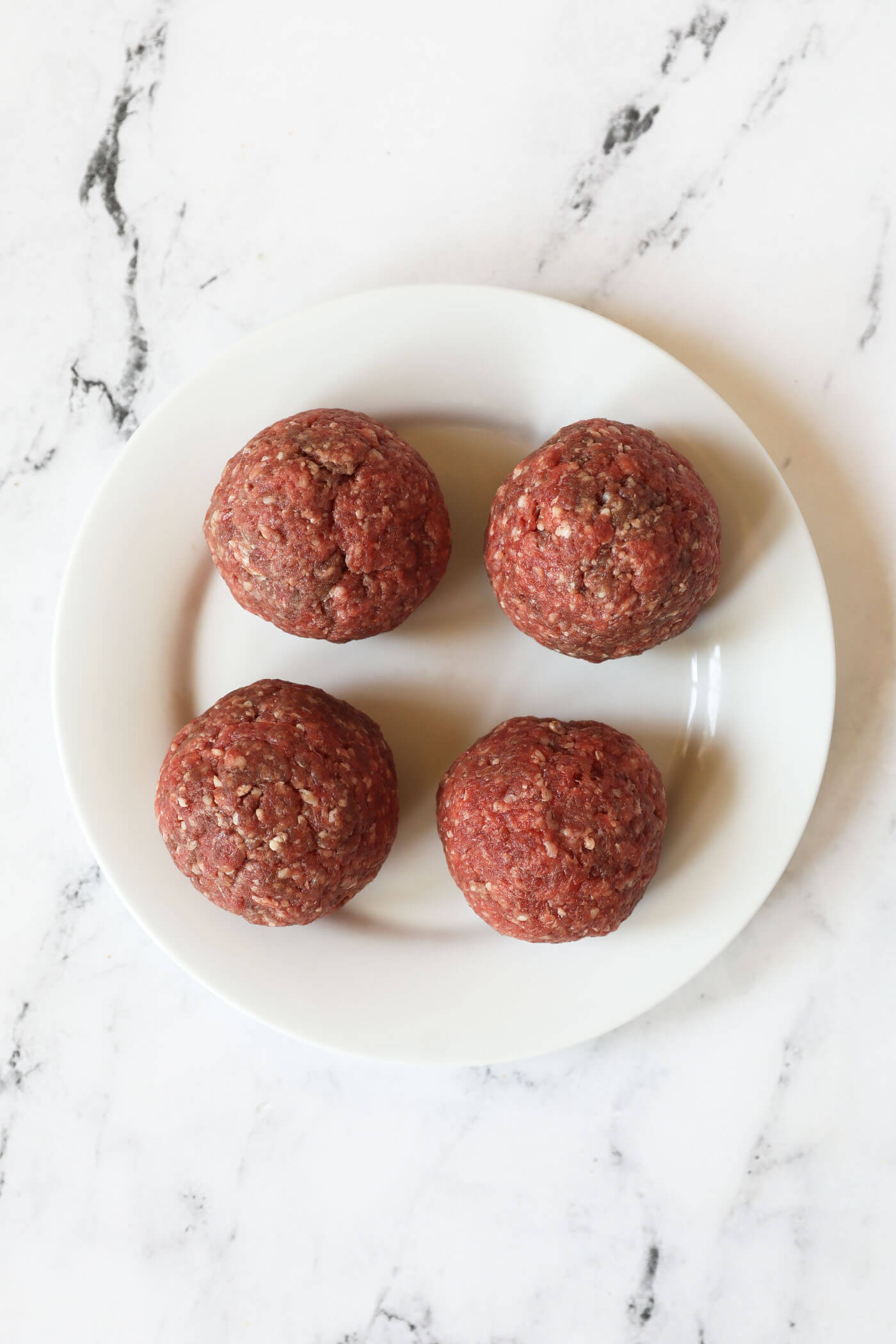 - Divide beef into 4 equal portions. Roll each portion into a ball.